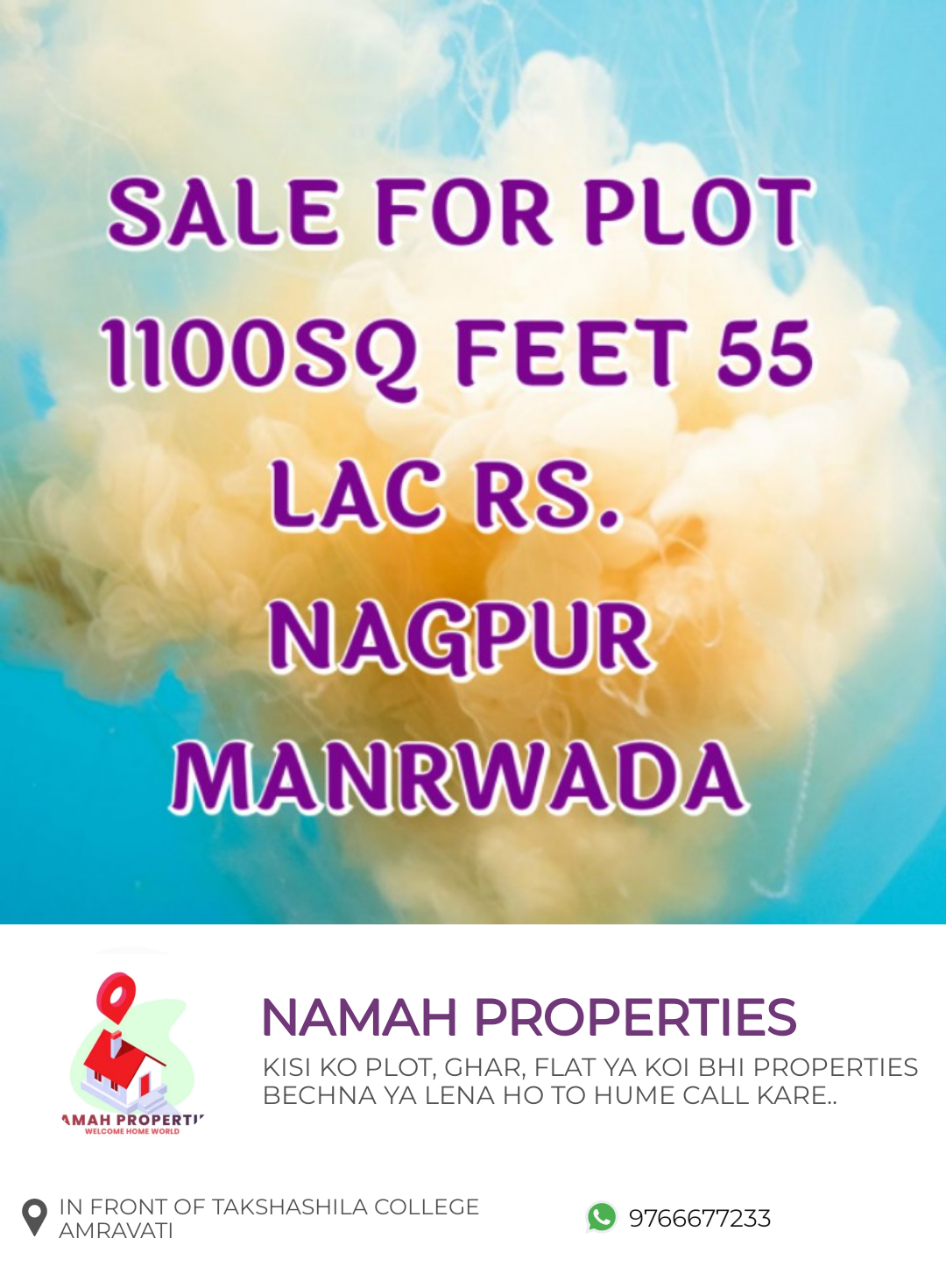 plot and plot rate 2000 rs per sqft 2000 / 1936 sqft AMRAVATI YOGIRAJ NAGAR PLOT 1936 square foot plot available at tapovan yograj Nagar, and plot front size 30 and it's a prime location and cream plot, so buy today. Enquiry Now